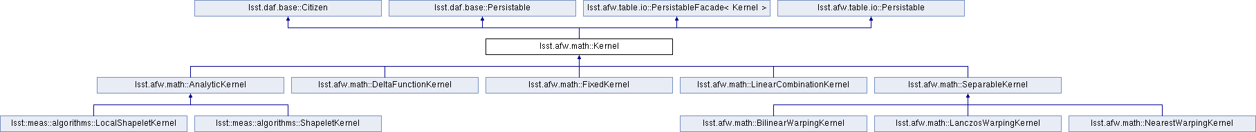 Implemented in lsst.afw.math::SeparableKernel, lsst.afw.math::LinearCombinationKernel, lsst.afw.math::DeltaFunctionKernel, lsst.afw.math::AnalyticKernel, lsst.afw.math::FixedKernel, lsst.afw.math::NearestWarpingKernel, lsst.afw.math::BilinearWarpingKernel, and lsst.afw.math::LanczosWarpingKernel.