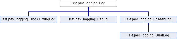Logs used by an application are organized into a hierarchy. Applications normally get the root Log via the static method Log::getDefaultLog(). This log by default is configured to print messages to the screen (although a production application will typically replace the default Log with one that sends messages elsewhere). Alternatively, an application can configure its own root Log via the Log constructors, or with the convenience subclasses, ScreenLog and DualLog (used to send messages to both the screen and a file). It is possible to have multiple, independently-configured Log hierarchies, but it is intended that one is sufficient for an entire application.