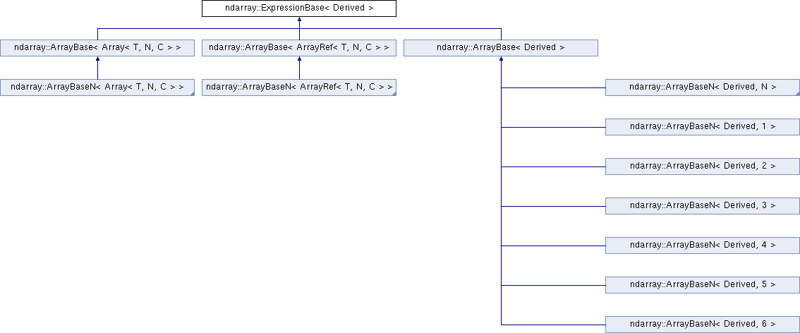 ExpressionBase is a CRTP base class for both true array objects (subclasses of ArrayBase) and lazy array expressions, which are created by most arithmetic, bitwise, and logical operations on arrays. These lazy expressions have most of the features of a true array to a const data type.