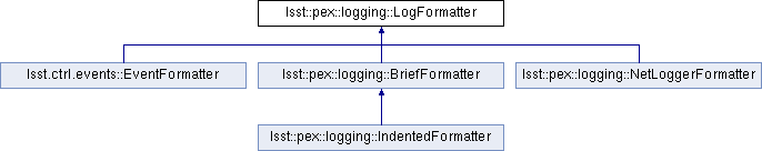 Implemented in lsst::pex::logging::NetLoggerFormatter, lsst::pex::logging::IndentedFormatter, lsst::pex::logging::BriefFormatter, and lsst.ctrl.events::EventFormatter.