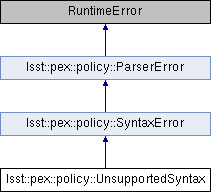 Public Member Functions inherited from lsst::pex::policy::SyntaxError | |