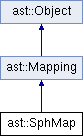 A SphMap is a Mapping which transforms points from a 3-dimensional Cartesian coordinate system into a 2-dimensional spherical coordinate system (longitude and latitude on a unit sphere centred at the origin). More...